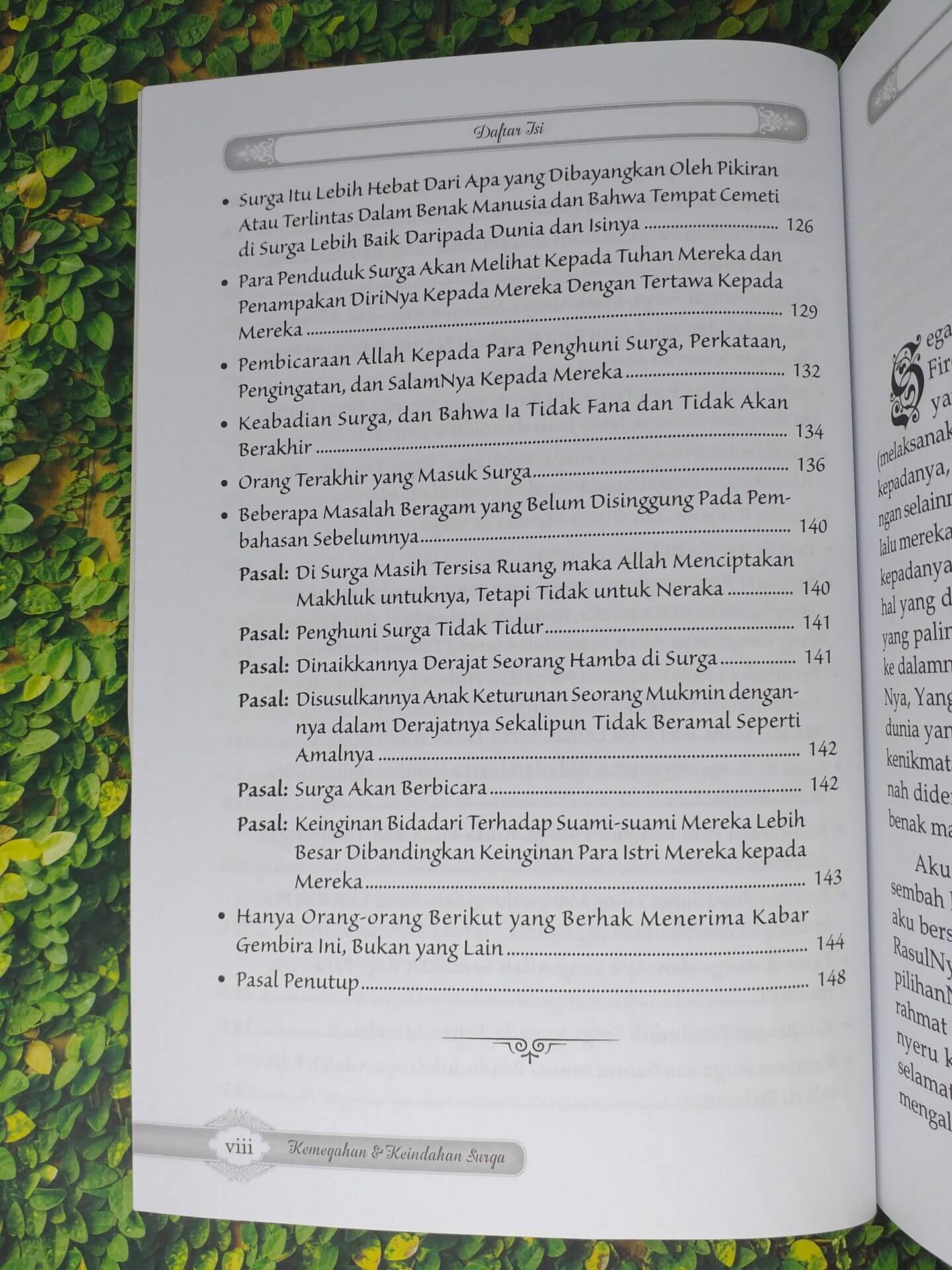 Dan buku ini, fokus menggambarkan kepada mata hati kita berbagai hal tentang negeri kegembiraan dan kesenangan itu, berdasarkan al-Qur`an dan as-Sunnah yang shahih. Di antaranya: